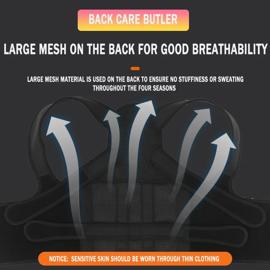 Lightweight & Breathable: Constructed from lightweight and breathable mesh fabric, this back support brace ensures optimal comfort while maintaining proper posture. Its quick-drying properties make it ideal for daily wear, whether at home, work, or on the go.