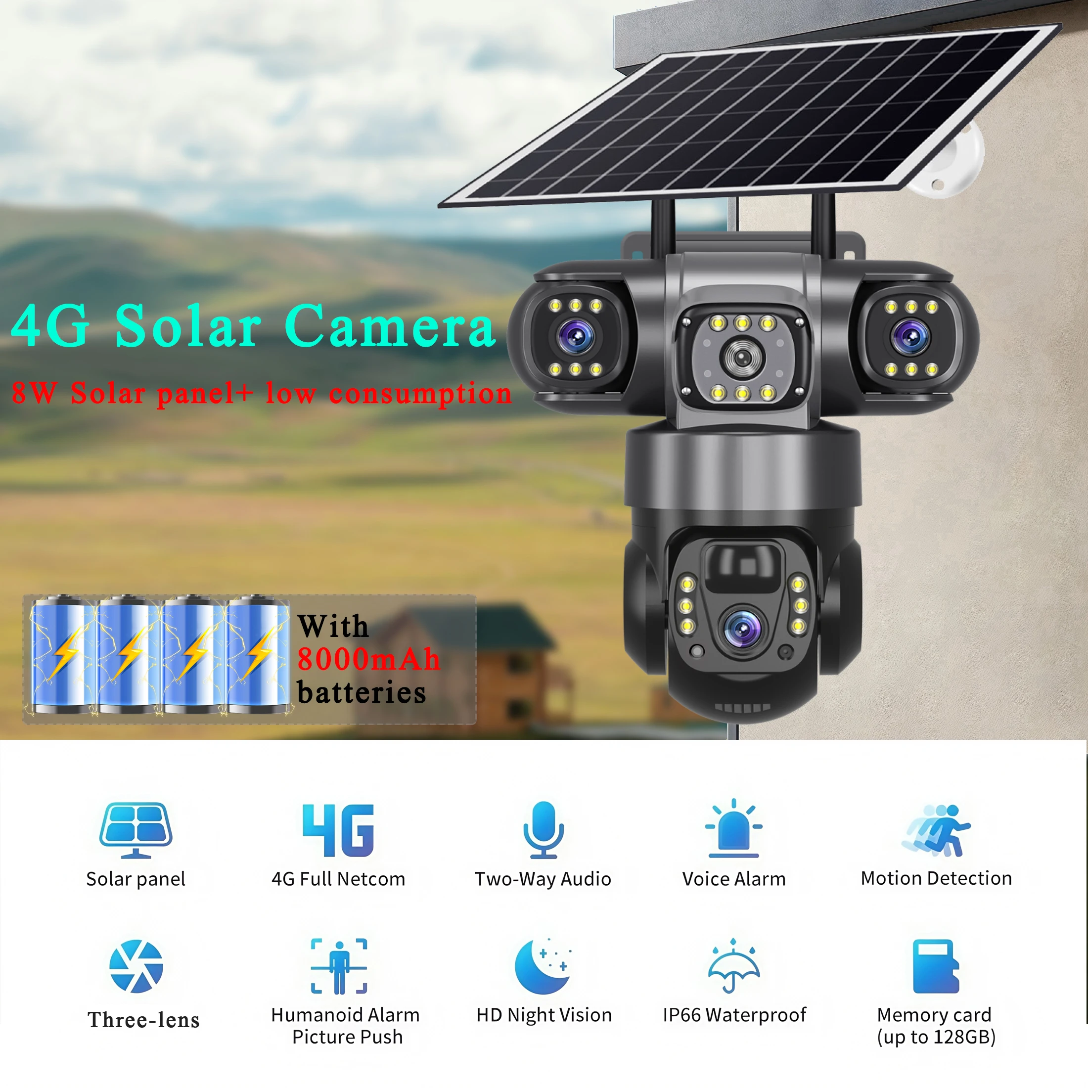 15MP three-lens triple screen 4G solar powered battery PTZ camera