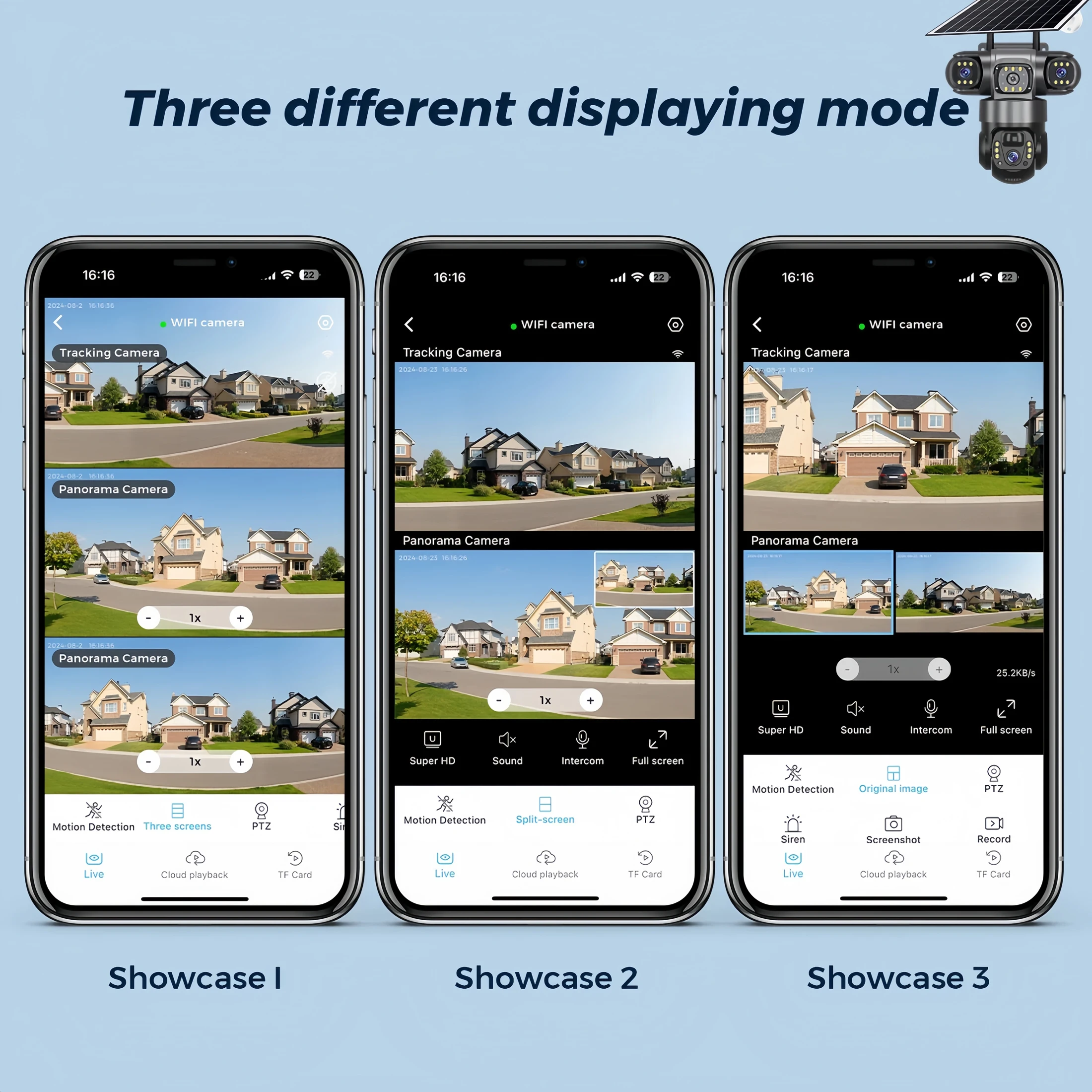 * Our Camera: 15MP HD Pixel, 3 screen.It can simultaneously monitor multiple images from different angles, with no dead corners at 360 degrees, and you can see the details of each corner.