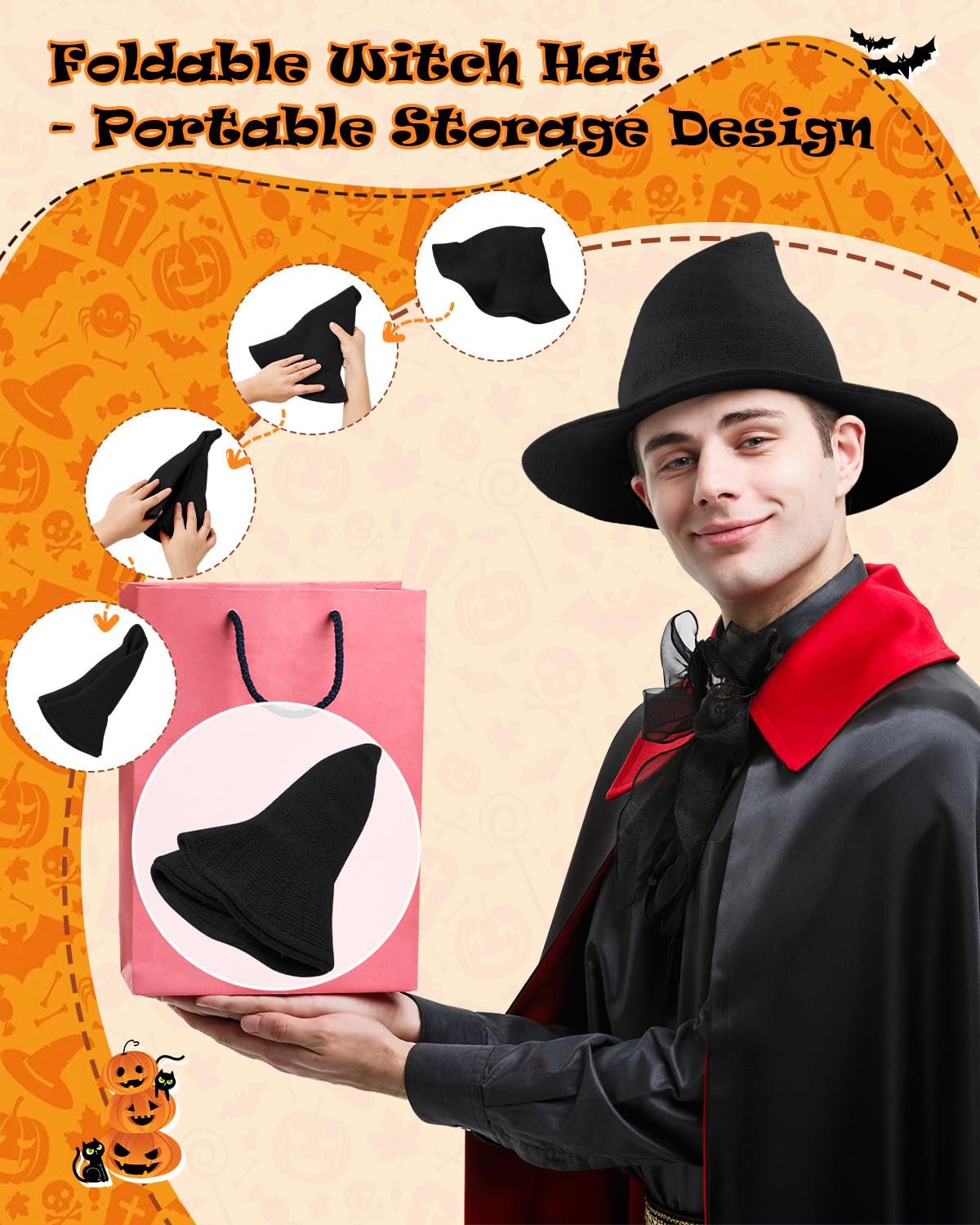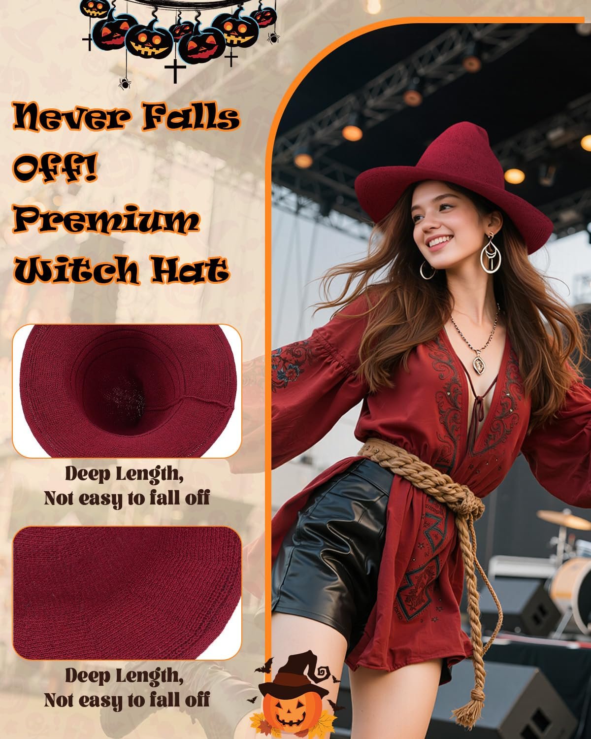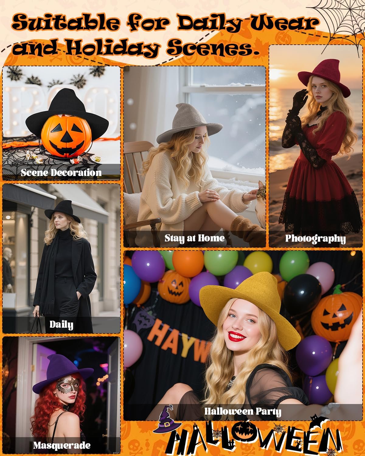 This black witch hat is the most versatile and fashionable choice for Halloween or cosplay.