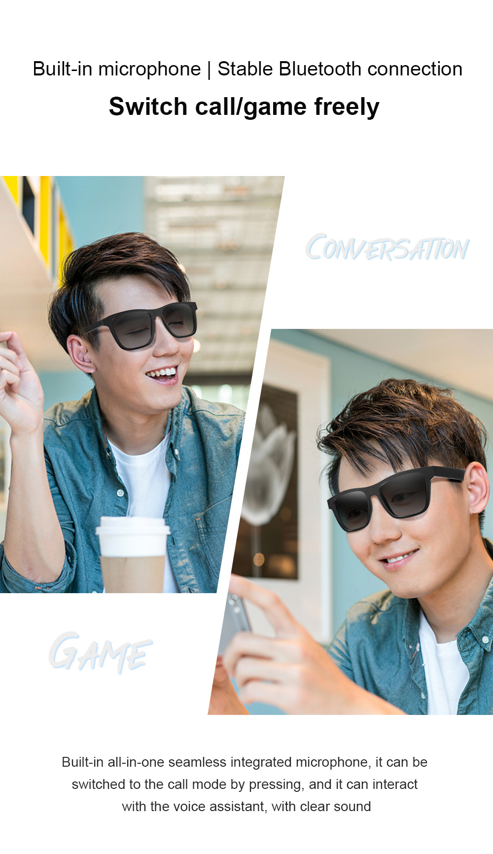 🔥W3 Wireless Bluetooth Smart Glasses Sunglasses Al Translation Glasses